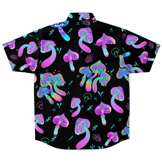 Magic Mushrooms short sleeve button down shirt